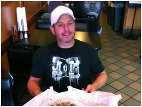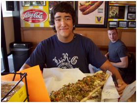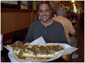 So what is the Windy City Sears Tower Challenge? Simply eat 7.2lb beef and sausage combo sandwich with cheese, hot and sweet peppers and a bag of fries in 30 minutes or less.
